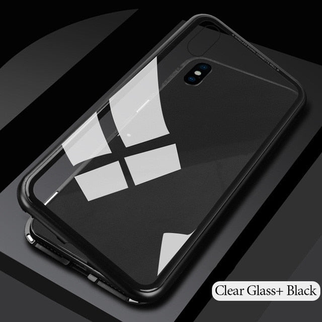 GETIHU Metal Magnetic Case for iPhone XR XS MAX X 8 Plus 7 +Tempered Glass Back Magnet Cases Cover for iPhone 7 6 6S Plus Case